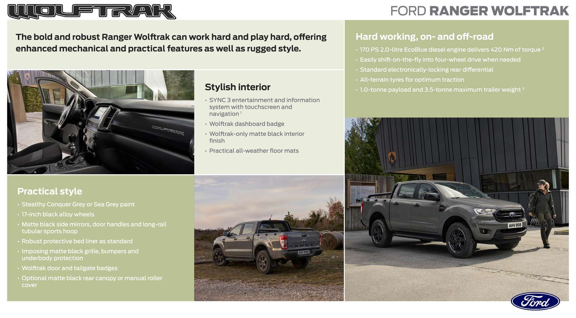 Ranger Wolftrak je robusan pick-up namijenjen korisnicima kojima su potrebne izražene off-road performanse, bez kompromisa u pogledu udobnosti i komfora.