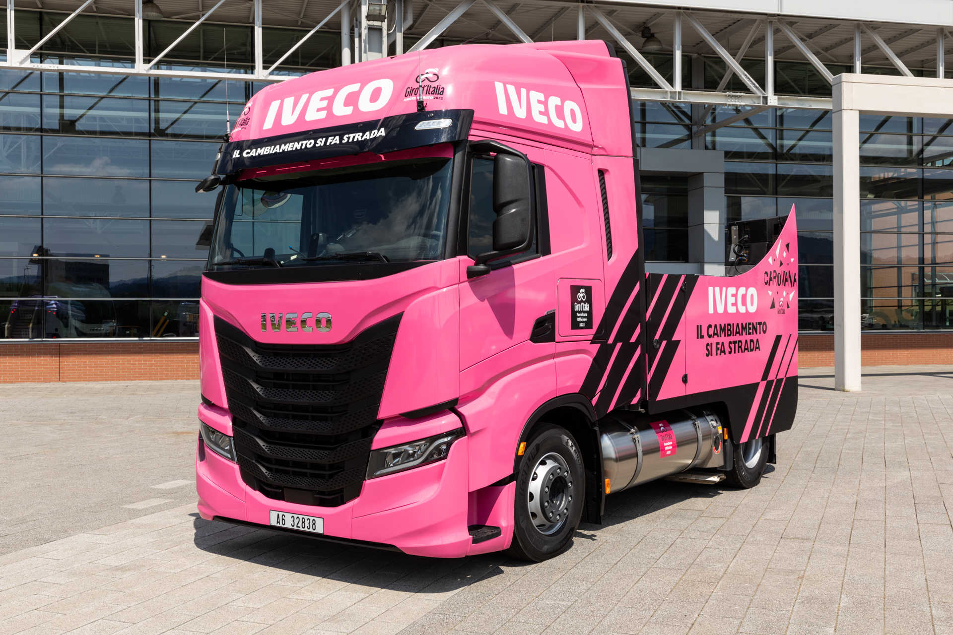 IVECO će svojim vozilima pratiti najbolje svjetske bicikliste na 21 etapi Giro d'Italia 2022, koja će započeti u Budimpešti 6. maja, ostati u Mađarskoj prve 3 etape, zatim se seli u Italiju, a završiće u Veroni. 29. maja. Svaki dan utrke IVECO S-WAY LNG će predvoditi ‘Carovanu’, popularnu povorku ukrašenih vozila koja prethodi biciklistima, stvarajući prazničnu atmosferu uz zabavu i muziku. IVECO-ov vodeći kamion, posebno prilagođen za ovaj događaj, nosi livreju dizajniranu u ružičastoj boji Giro d’Italia.