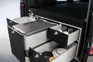 VanEssa mobilcamping je pripremila modularne komponente, sa integrisanim sudoperom (sa rezervarom za 13 l vode), hladnjakom (31 l), plinskim kuhalom i ormarićem za posuđe. Kompletan modul ima masu od 60 kg, a kontrisan je tako da s u kratkom vremenu može ugraditi u Citana.