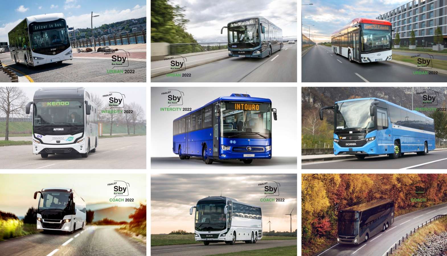 Nagrade ċe biti podijeljene u tri kategorije: Urban (gradski autobusi), Intercity (međugradski autobusi) i Coach (turistički autobusi).