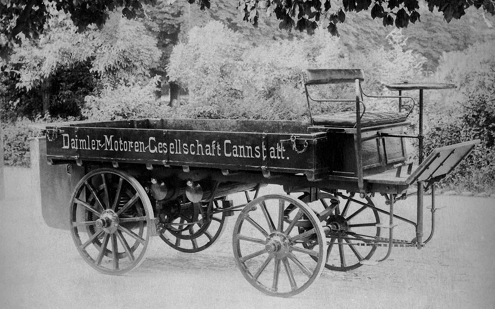Gottlieb Daimler je imao pragmatičan pogled na dizajn, pa je taj prvi kamion zadržao oblik teretnih kola, ali bez vučne rude za uprezanje konja.