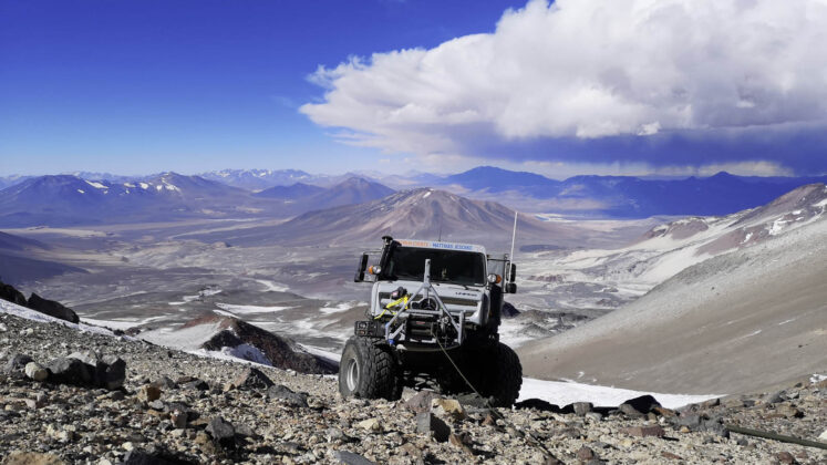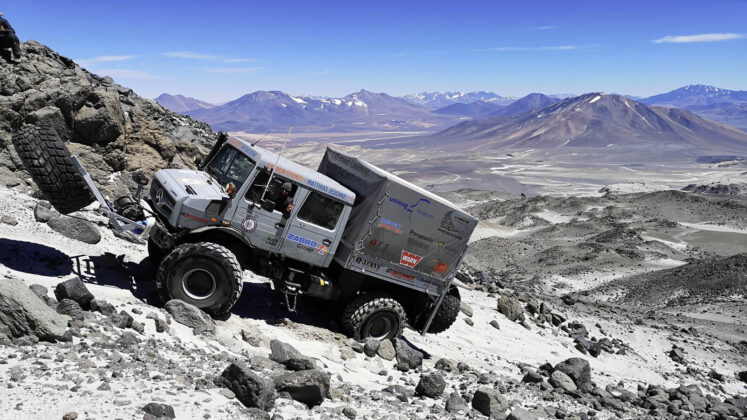 Desetočlani ekpsedicioni tim pod vodstvom Matthiasa Jeschkea, popeo se na najviši vulkan na svijetu, Ojos de Salado u Čileu, sa dva specijalno pripremljena vozila Unimog U 5023.